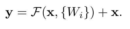 Residual Learning을 수식으로 적으면 다음과 같다.
