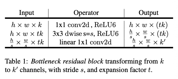 즉, 다음과 같은 Linear Bottleneck 구조를 따른다.